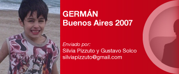 Nuestro infinito agradecimiento a todos los que estuvieron con nosotros, dándonos aliento hora tras hora, rezando... Nuestro agradecimiento a mi mami, Amanda, por haber cuidado de nuestros otros dos hijos, Ivan y María Luján, a Daniel Pizzuto y Sra., Joly Liguori y Sra., a los compañeros de trabajo de mi esposo (Aysa), especialmente a "Dibu", que no se separó de nosotros. Al cuerpo docente del colegio Instituto Nuestra Señora de Fátima, de Villa Martelli, Ana María, Alicia, Gabriela, Carolina, Amalia, Rina, al profe de música Marcelo Steffanoli y a toda la familia (Laura, Martincho y Luchi), a Graciela Orellana, a mis amigas Gra y Caru, a todos los papás que no tuvieron más que demostración de cariño para con nosotros. A la Dra. Ana María Casal, que fue la que intuyó con certeza absoluta el diagnóstico. Al nefrólogo que recibió a Germi en el Mater Dei y de quien lamentablemente no recuerdo el nombre. A mis ex-compañeros de trabajo, a mis cuñadas, Lucrecia y Patricia, quienes, diferencias de por medio, estuvieron siempre presentes. A la Dra. Ana Ceballos, Jazmín Ton, Dr. Javier Casellas, a Inés y a Estrella, a las familias de los compañeros de nuestros hijos...