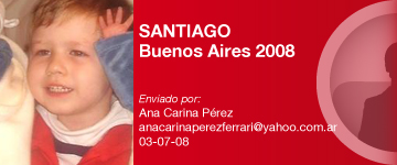 Agradezco infinitamente a los abuelos de Santi, a los tíos y a los primos, que están siempre con él y lo consienten en todo. Y a todas las personas que rezan, y rezaron por nosotros. Gracias a Dios porque estamos vivos por él. |